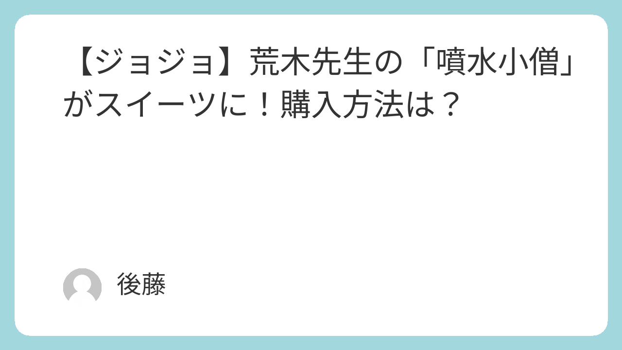 『ジョジョの奇妙な冒険』でおなじみ・荒木飛呂彦先生のパブリックアート(噴水小僧)がスイーツになるという情報が舞い込んできました。